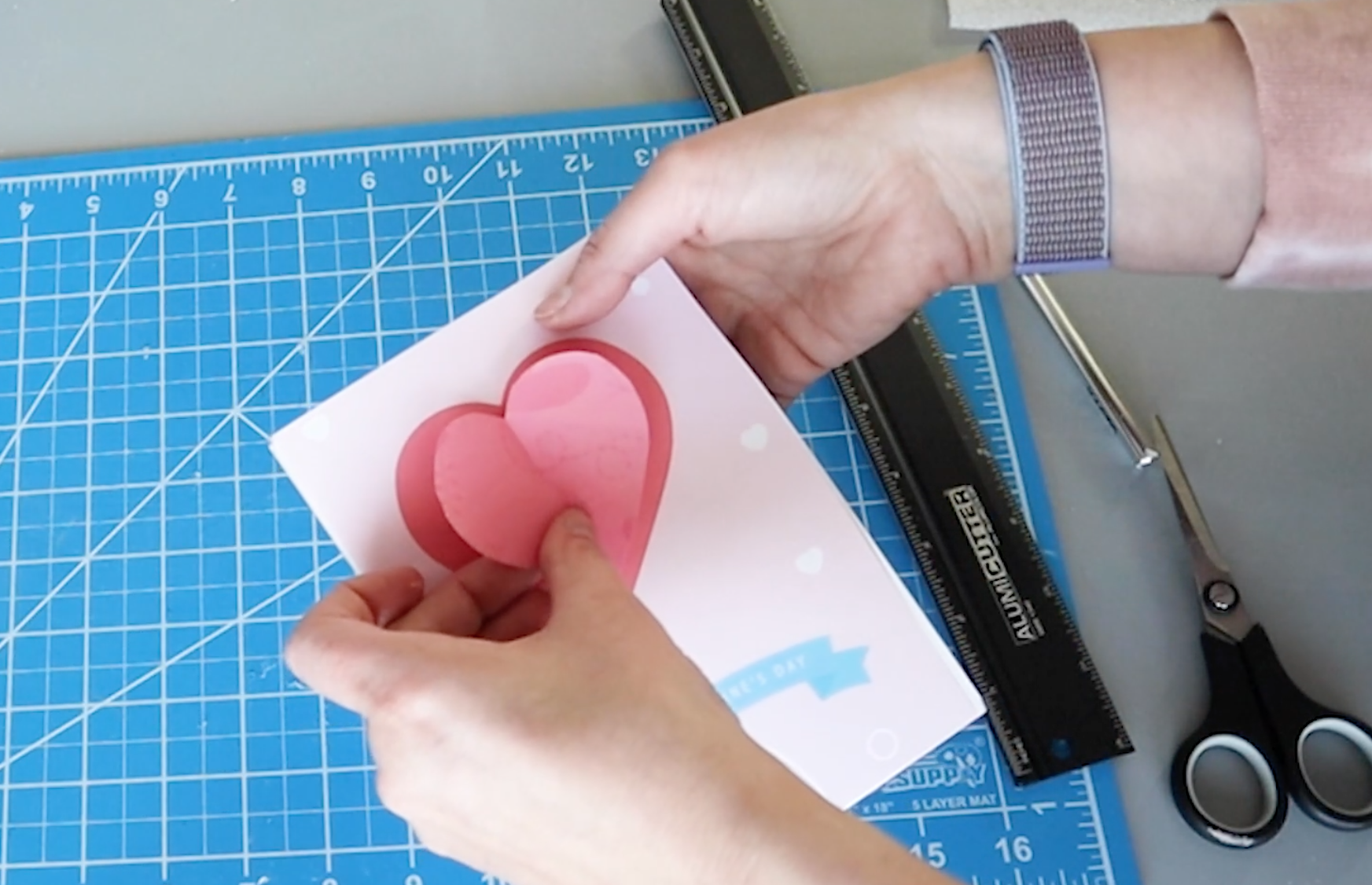 Gently score a line down the center of the heart. I use a very sharp X-acto knife, but I’m just barely pressing down, so it creates just a score not a cut. Then fold that in half and smooth that edge down.