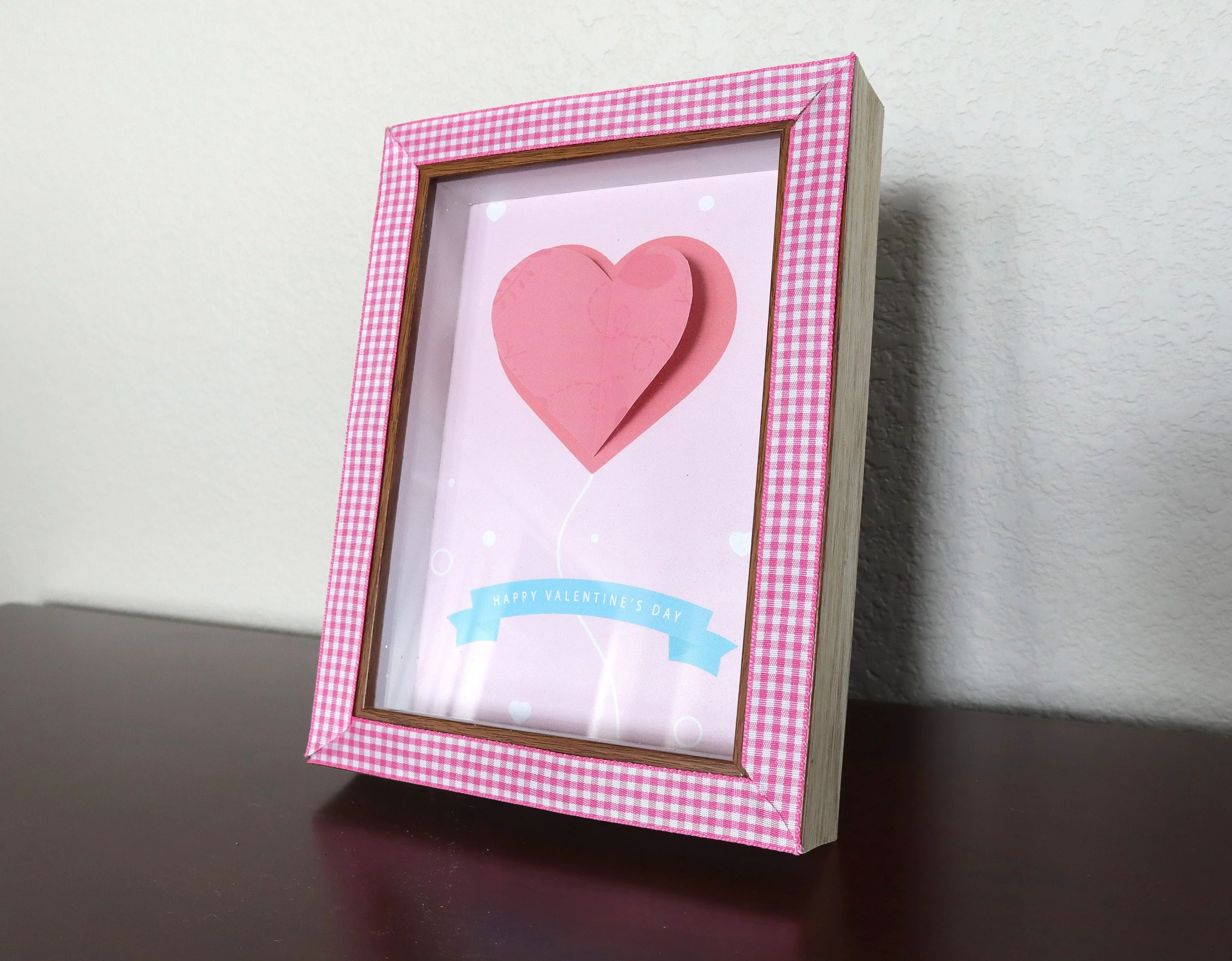 And here is how the final Valentine’s Day shadow box came out. You could hang it on a wall or set it up on a table. It looks so pretty either way.
