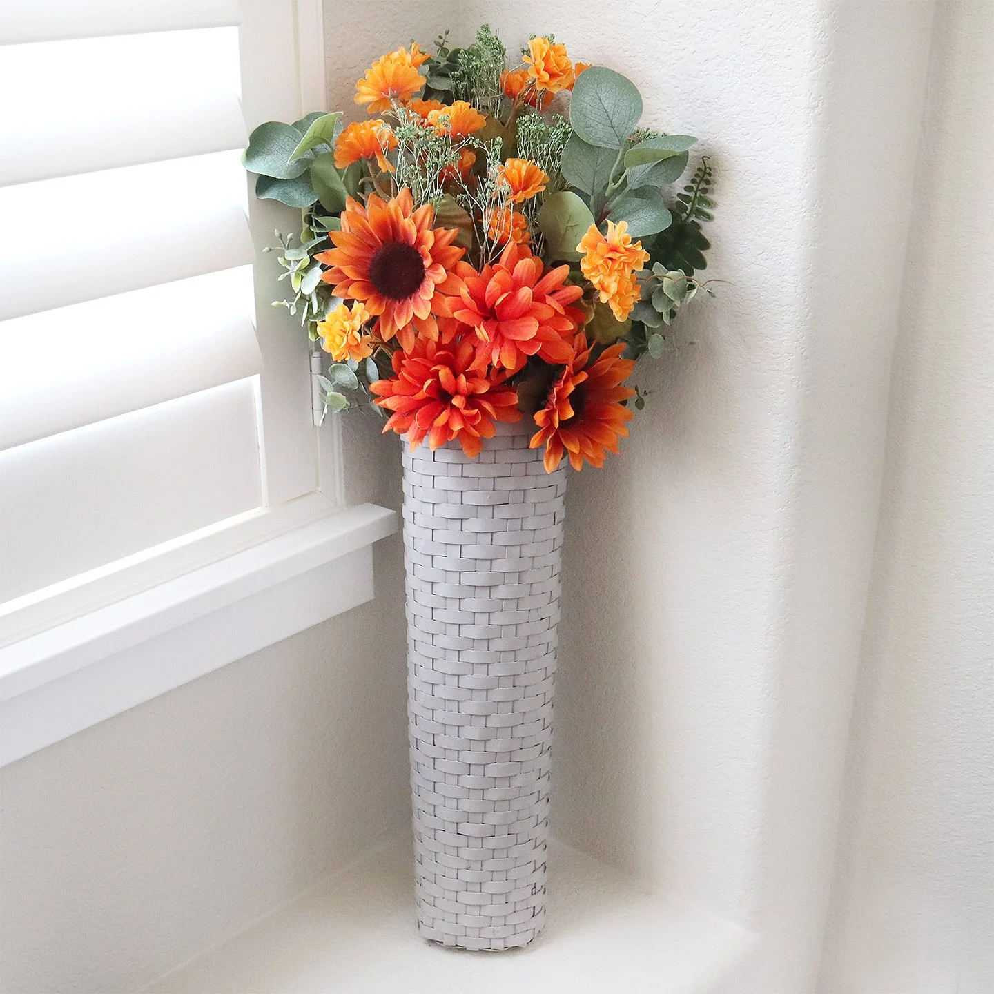 This orange, coral and green goes so beautifully with that grey basket. I think this will add some Spring cheer to our front door and those colors may go really nice with my red front door.