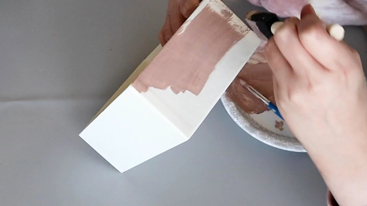 I started with this sturdy cardboard box that was packaging for some hand soaps. I like how this box has a linen type texture on it too. We’ll use a light brown paint to match the Kirkland’s inspiration piece.