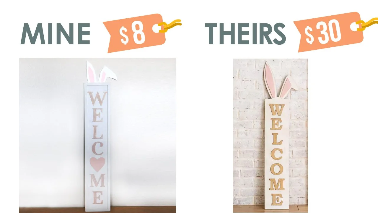 Isn’t this welcome sign the cutest? I love the bunny ears on top and let me show you what I found at Dollar Tree to help us make this for a lot less than $30.